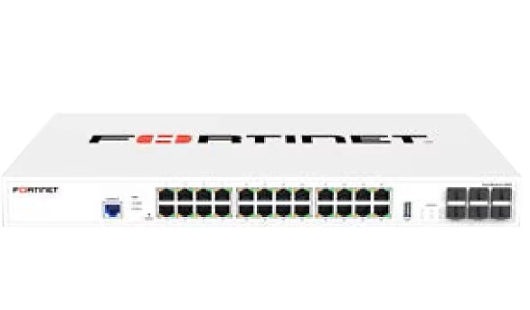 Layer 2 FortiGate switch controller compatible switch with 24x 1G RJ45 and 4x 10G/1G SFP+/SFP ports and 1x RJ45 console port. Fanless.