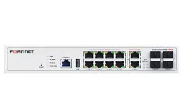 Layer 2 FortiGate switch controller compatible PoE 802.3bt switch with 2x 5G RJ45 with PoE bt, 8x 2.5G RJ45 with PoE af/at and 4x SFP+ ports. Fanless. Max 200W PoE output limit.
