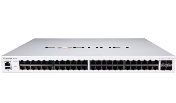 Layer 2/3 FortiGate switch controller compatible PoE+ switch with 48 x GE RJ45 ports, 4 x 10 GE SFP+, with automatic Max 421W POE output limit